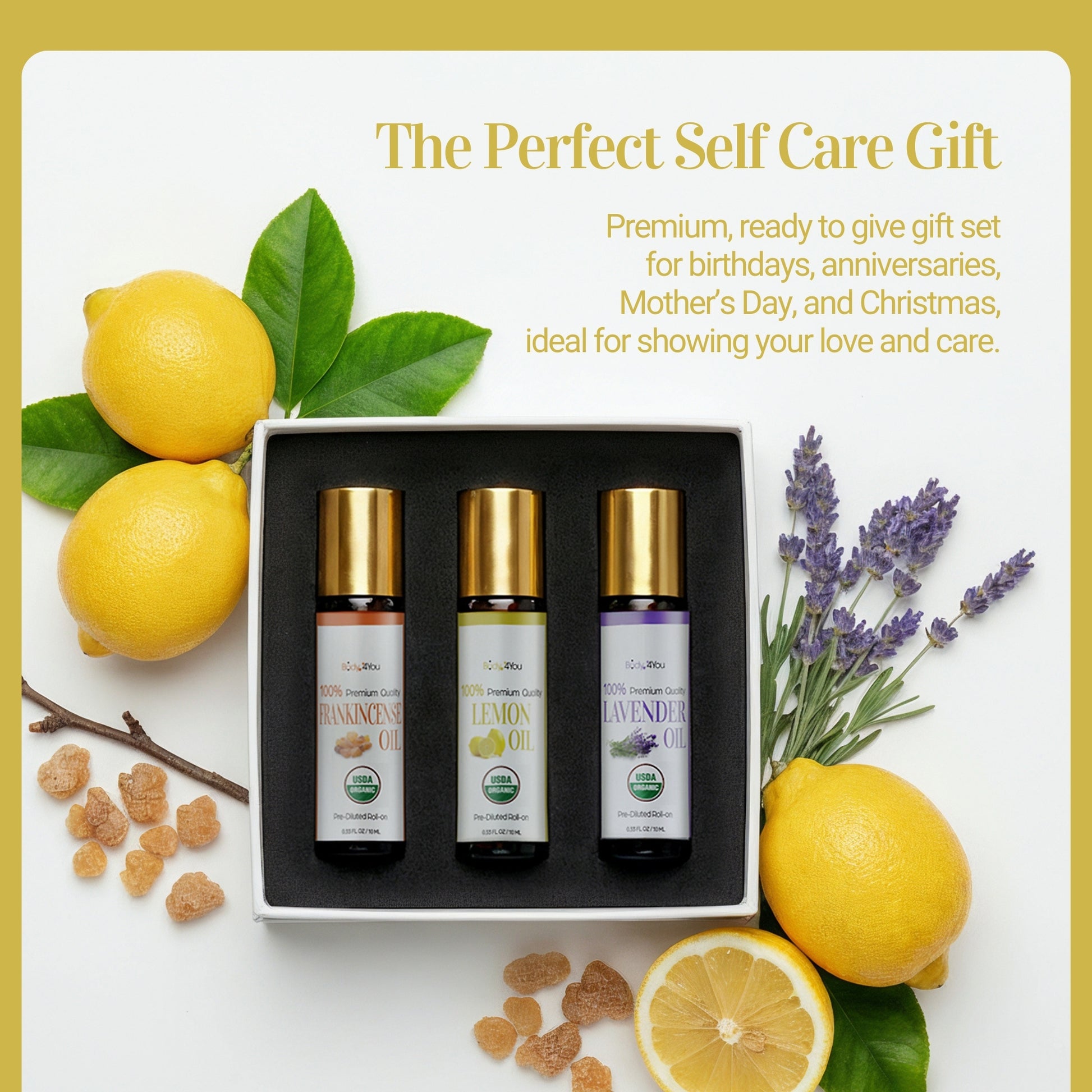 3PC Essential Oils Gift Set - Pure 100% USDA Organic
